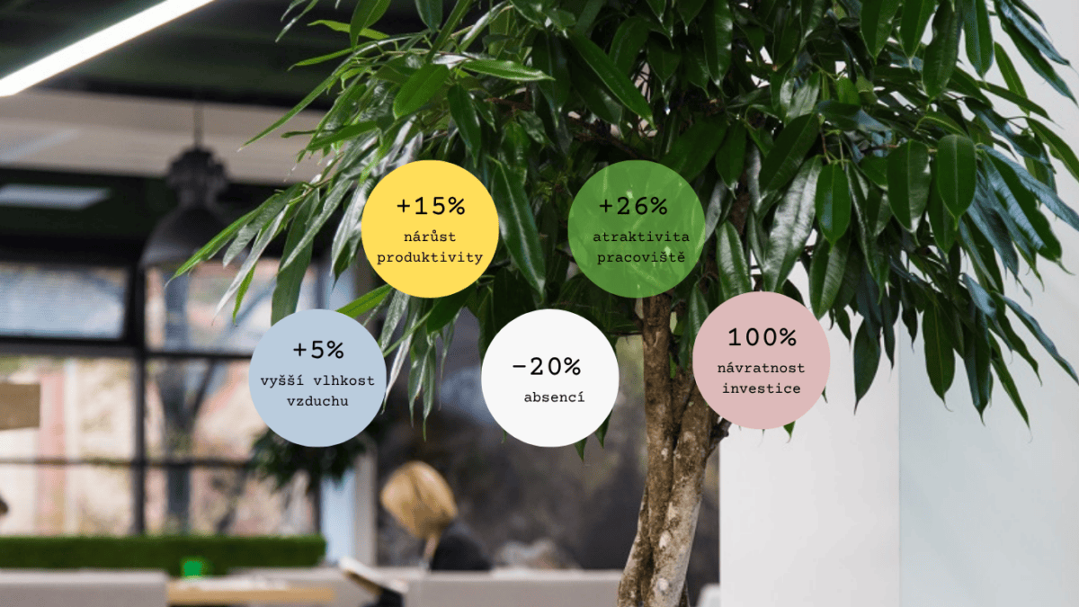 Zeleň snižuje stres, zvyšuje spokojenost a napomáhá regeneraci. Lidé jsou optimističtější, klidnější a výkonnější. Tohle je pracovní prostředí, ve kterém chcete být.